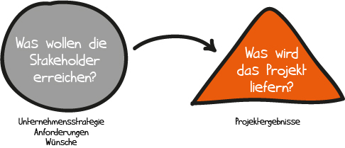 In Projekten wird für Projektziele eine Verbindung zu den Zielen und Anforderungen der Stakeholder und der Organisation hergestellt: